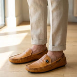 Diferente de materiais sintéticos, o nosso couro legítimo laceia e se adapta à anatomia do seu pé com o uso. Sem bolhas, sem aperto e com o toque macio que só uma pele natural oferece.