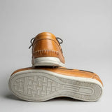 Diferente de materiais sintéticos, o nosso couro legítimo laceia e se adapta à anatomia do seu pé com o uso. Sem bolhas, sem aperto e com o toque macio que só uma pele natural oferece.