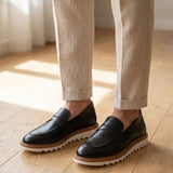 Diferente de materiais sintéticos, o nosso couro legítimo laceia e se adapta à anatomia do seu pé com o uso. Sem bolhas, sem aperto e com o toque macio que só uma pele natural oferece.